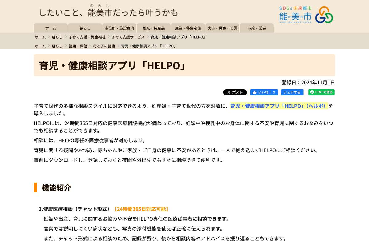 育児・健康相談アプリ「HELPO」|能美市ホームページ