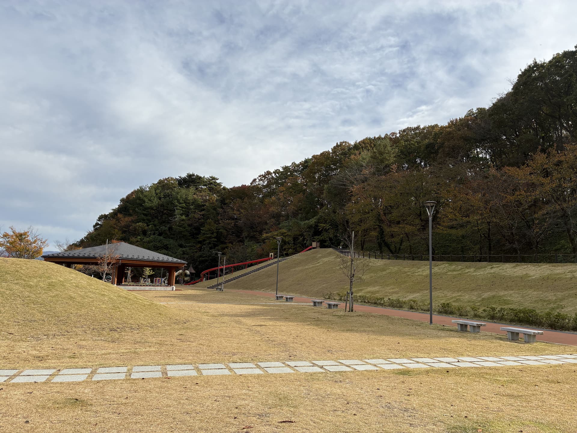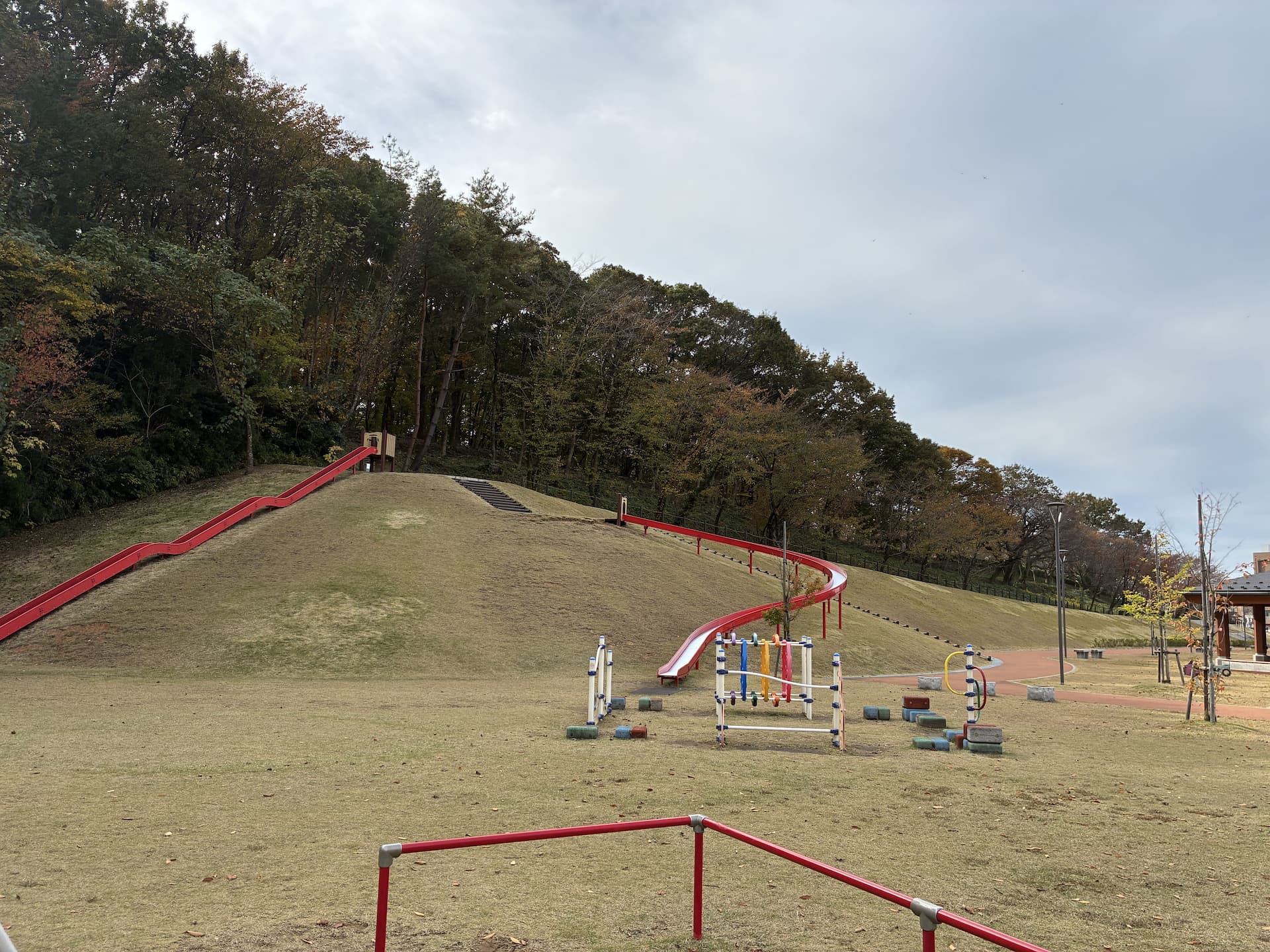 広々とした公園には、築山を利用したすべり台など子供向けの遊具がそろい、家族みんなで楽しいひとときを過ごせます。