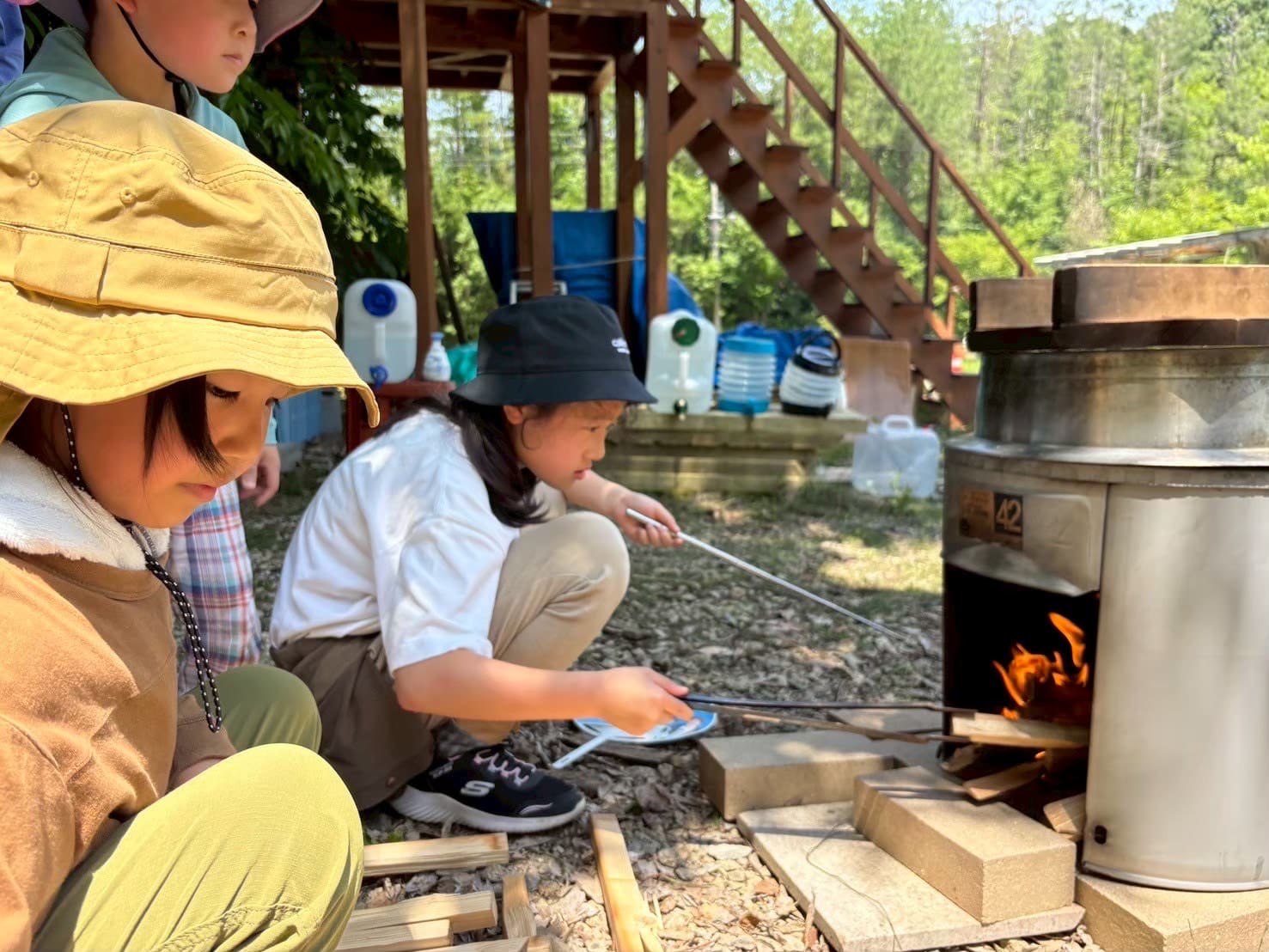 子供と一緒に山遊び・森遊びを楽しむ活動を行っているのが、青空自主保育「おひさまぼっこ」です。いしかわ動物園の近くに、「おひさまぼっこ森の遊び場」があり、ツリーハウスが目印です。そこを拠点に、昔ながらの火起こし体験や、みんなで山に入り山探検など、自然体験が楽しめるさまざまなプログラムを行っています。日常を離れ、親子で自然の中で遊び、学ぶ自然学校です(参考インタビュー記事)。家族だけでは、なかなかできない自然体験を、他の親子と一緒に気軽に楽しむことができます。豊かな自然が身近にある能美市ならではの遊びや体験と言えるのではないでしょうか。