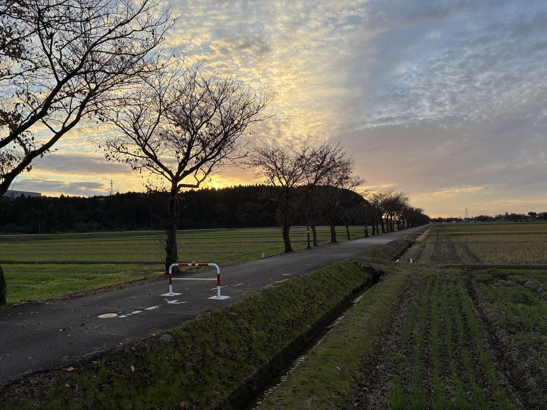 辰口の特徴として、もう一つ紹介したいのが町を走っていると目に入る桜並木です。10㎞以上桜並木が続き、春には約2,000本のソメイヨシノが咲き誇る圧巻の光景が楽しめます。並木道は健康ロードとして整備され、地域の人たちの散歩やランニング、サイクリングコースとして親しまれています。この桜並木に魅せられて、辰口への居住を決めた移住者の方もいます。
